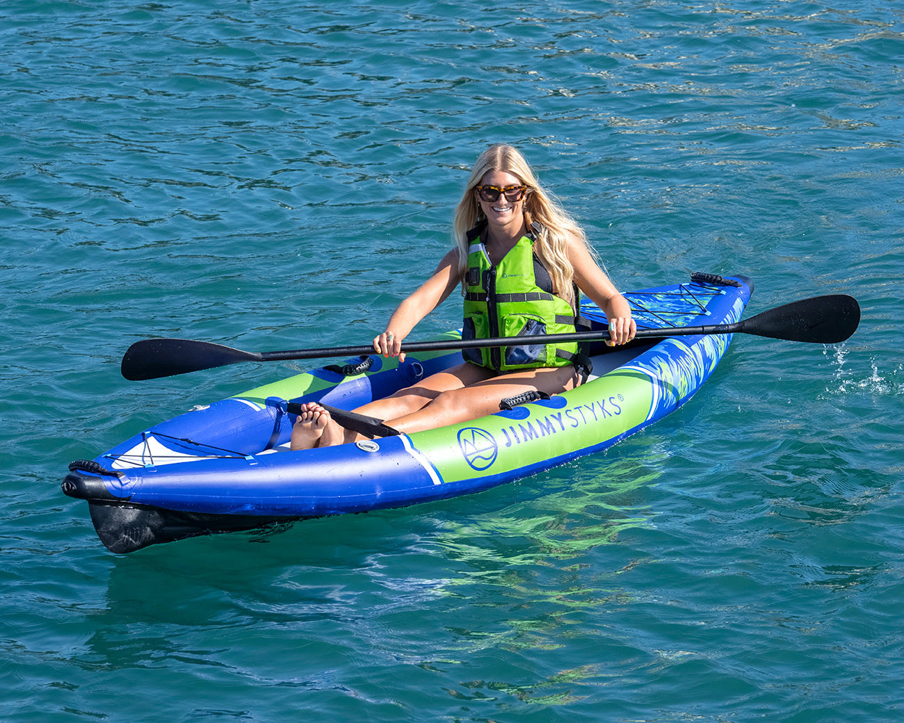 Discover the freedom of the waters with Nomad I, the single-person inflatable kayak tailored for the passionate explorer with transportation and storage constraints. With its stellar maneuverability and unwavering stability, you're set for any adventure. Its single-layer drop-stitch construction guarantees durability, while the molded EVA seat promises comfort tailored to you. From its utility tie-downs for easy gear storage to the detachable footrest enhancing your paddling experience, every detail is thoughtfully designed.